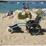 Fauteuil destiné aux personnes à mobilité réduite leur permettant la baignade en mer. Disponible sur les plages de Saint Asile et du Touring
